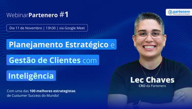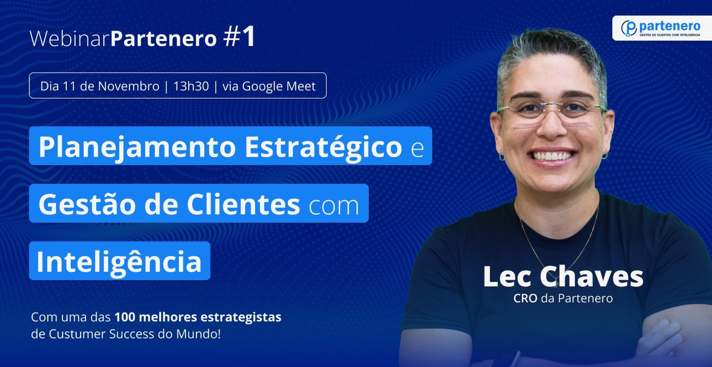 O webinar “Planejamento Estratégico e Gestão de Clientes com Inteligência” acontecerá no dia 11 de novembro, às 13h30. A palestra será conduzida por Lec Chaves, CRO da Partenero, uma das 100 melhores estrategistas de Customer Success do mundo, professora de MBA e mentora de negócios.