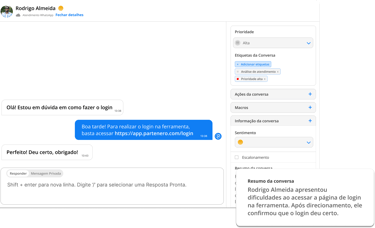 Aumente a produtividade da equipe de atendimento e a satisfação dos clientes com a ferramenta de Atendimento omnichannel da Partenero: WhatsApp, e-mail, chat, redes sociais, respostas prontas, IA para auxiliar respostas, indicadores de saúde e monitoramento da jornada do cliente.