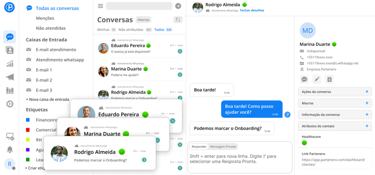 Faça o atendimento omnichannel dos clientes, incluindo contatos e grupos do WhatsApp. Tudo isso com informações precisas sobre a saúde e jornadas dos clientes em tempo real.