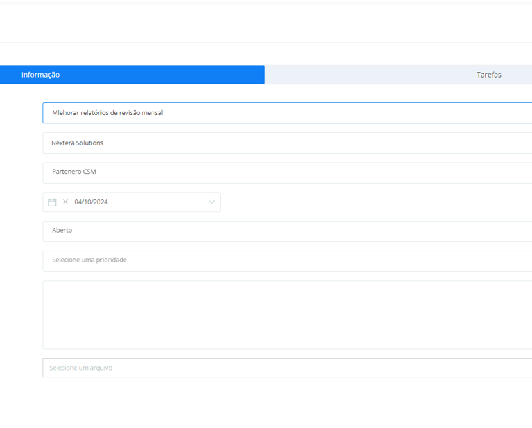 Defina tarefas, prazos e KPIs que guiam suas interações rumo ao sucesso. Acompanhe o progresso de cada etapa, ajuste estratégias proativamente e garanta resultados mensuráveis, promovendo alinhamento e satisfação do cliente.