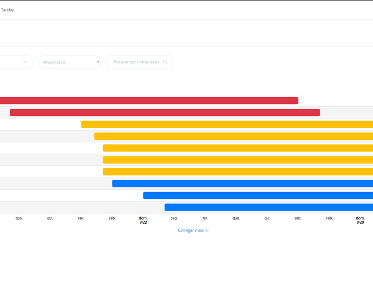 Tenha uma visão estratégica do seu progresso. O recurso de Gantt ajuda a planejar projetos complexos, distribuindo tarefas ao longo do tempo, facilitando o acompanhamento e garantindo que prazos e metas sejam cumpridos com eficiência.